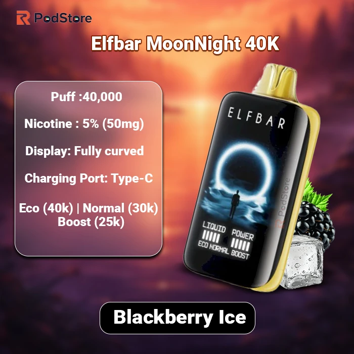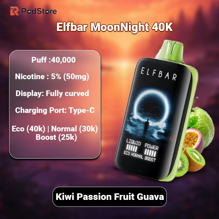 The Elf Bar Moon Night 40000 Puffs combines high capacity, reliable hardware, and practical design in a single rechargeable disposable. Its curved display, stable flavour output, and fast charging explain why it appears frequently in UAE searches and comparisons.